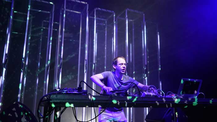 Musicalement parlant, l’autre intérêt de ce festival est l’Electronic Stage, pouvant accueillir jusqu’à 2000 personnes sous chapiteau. Colours Of Ostrava a de quoi devenir un festival incontournable parce que cette scène existe seulement depuis deux ans. Ce que nous avons trouvé mal cousu c’est que les Djs sets débutent seulement vers 19 heures et parfois avec des coupures de 45 minutes entre deux artistes, surtout en début de soirée. Plutôt que de courts sets d’une heure, le programmateur de cette scène aurait pu prolonger les prestations de certains Djs afin d’offrir quelque chose de plus dense. Malgré tout nous y avons passé de bons moments. Le premier jour, le jeudi 14 juillet, nous avons pris nos repères en faisant le tour du site (nous sommes arrivés seulement vers 23 heures) alors qu’Unkle mixait. Sa musique downtempo est un peu dépassée et guère stimulante. Cependant c’est en tapant du pied que nous attendions patiemment notre frenchy adoré, Rone (photos ci-dessous). (Un énième artiste étranger qui performait pour la première fois en République Tchèque). C’est autre chose ! Outre qu’il s’agisse d’un live pêchu, c’est évident que Rone s’amuse ! Le public le ressent et le lui rend bien. Malheureusement il faudra s’arrêter sur cette bonne vibe. Il est 2 h 30 du matin.