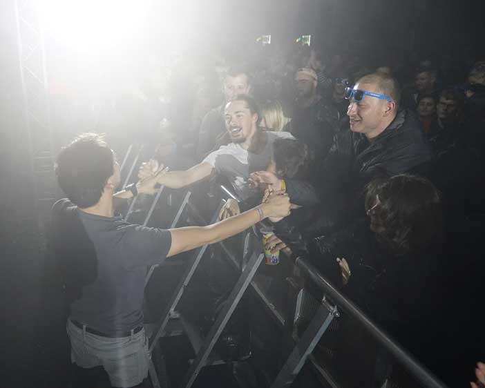 Le lendemain, le Dj set de Orient (un slovaque) sera une autre belle découverte avec sa bass music bien groovy. Mais c’est Erol Alkan que nous guettons un peu plus tard. Une heure de set aura été un peu court et long à la fois, parce qu’il a vraiment tardé à faire décoller sa sélection trop planante. Heureusement l’anglais Boy 8-Bit, qui lui succède, a réussi indéniablement à mettre toute l’audience d’accord. Et ce jusqu'à la fermeture du site à 5 heures du matin. Ça a sué. Le jour suivant, le samedi 16 juillet, la tête d’affiche électro se nomme Boys Noize. Il est invité à jouer sur une scène plus grande et en plein air. Sauf que malgré son set tonique, cette séquence, à cause de la pluie, aura été un peu boudée du public certainement épuisé. Pour les plus téméraires Actress, Nathan Fake puis l’allemand Christian Löffler se succéderont sur l’Electronic stage, une fois de plus jusqu’à l’aube. Le dimanche, pour ce dernier jour, le soleil est de retour. Evidemment les festivités s’achèvent plus tôt ce soir là. La dernière découverte est un groupe tchèque du nom de Mydy Rabycad (en photo ci-dessous). Un autre band avec une chanteuse qui jumpe partout. La musique entraînante fusionne sonorités vintage et sons électro, notamment grâce à une flûte électronique. Ils cultivent leur style, allant jusqu'à l’appeler «glamtronic». C’est donc avec glamour et joie que se clôturent ces quatre jours. Alors qu’Underworld termine son live au même moment sur Ceska Sporitelna stage, la scène principale. Evidemment dans ce genre de festival impossible d’être partout, il fallait donc faire des choix.