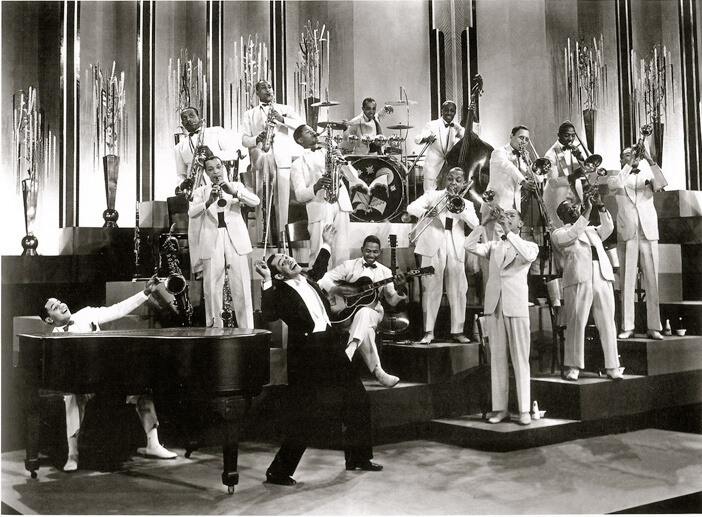 Composée en 1944, la fameuse photo représentant Orson Welles, Duke Ellington et Cab Calloway est tout sauf anodine. Fantasque ce dernier insuffle, dès la fin des années 20, un vent salvateur sur les big bands. Adepte des fameux zoot suits, ces costumes surdimensionnés qu’adopteront les zazous hexagonaux, Cab Calloway fut un temps le rival du Duke avant de faire les belles heures du Cotton Club de Harlem… Et la présence de l’auteur du magistral « Citizen Kane » scelle des liens indéfectibles entre le jazz et le cinéma.