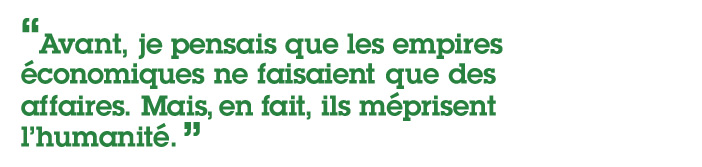 J’aime beaucoup ce slogan. Nous sommes très influencés par Fela Kuti et par un morceau comme « I.T.T. (International Thief Thief) ». Tout comme nous apprécions la dimension militante de Gil Scott-Heron et de Curtis Mayfield. Concernant le discours, je me suis vite aperçu que les trusts et consortiums n'étaient pas indispensables, qu'ils faisaient surtout partie du problème. Avant cela, je pensais que les empires économiques ne faisaient que des affaires mais, en fait, ils méprisent l’humanité.