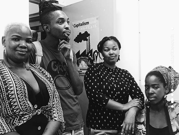 L’organisation caritative In Place Of War nous a invités à Johannesburg pour une résidence artistique, à la bibliothèque Keleketla. Nous avons enregistré avec des musiciens locaux (voir photo ci-dessous), notamment aux studios Trackside de Soweto. Le but était de partager nos cultures, d’expérimenter. De retour au Royaume-Uni, nous avons donc convié le légendaire batteur Tony Allen et des musiciens influents de la scène jazz londonienne comme Shabaka Hutchings, Tenderlonious ou Tamar Osborn. Avant de contacter des formations américaines, dont la section de cuivres d’Antibalas ou les Watts Prophets.