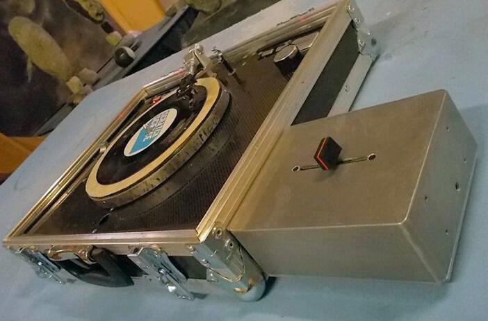 Il s’agit d’une platine direct drive 8 pouces, ce qui est déjà unique. Mais je propose aussi en option d’intégrer un mixer audio + crossfader. J’utilise des nanofaders + Pro X Fade. De plus, le mini-bras TTX peut se retourner, comme sur une QFO. Le skratcho est une variante du Scratchophone mais il est placé dans un flight case. Je faisais déjà ce type de montage avec notamment un moteur direct drive sur batterie. Techniquement, il a simplement fallu adapter l’existant dans un mini-flight case.