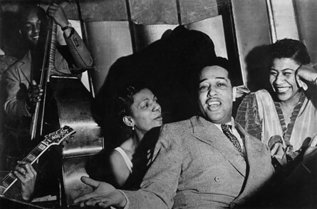 Duke Ellington entouré par Ivie Anderson et Ella Fitzgerald, au Savoy Ballroom à New York en 1938 (collection F. Driggs/Magnum Photos).