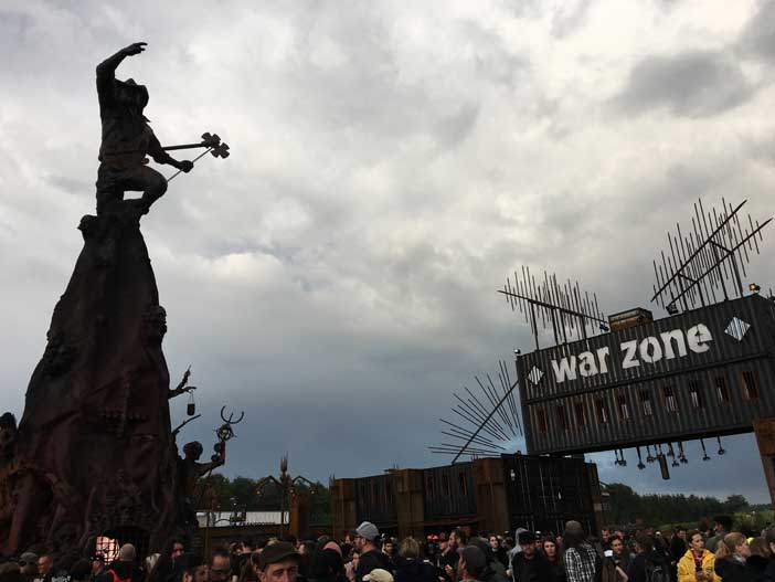On n’oubliera pas l’énorme hommage rendu par le festival à Lemmy Kilmister, chanteur de Motörhead décédé dernièrement. Feu d’artifice titanesque au son du groupe, faisant passer le 14 juillet pour une fête de pétards mouillés, et statue de douze mètres de haut à l’effigie de la star plantée derrière la Warzone.