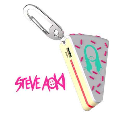 Steve Aoki entretient à merveille son statut de Dj/producteur superstar de l’Edm. Lorsqu’il ne slame pas sur son public autant excité que lui, le monsieur s’amuse à lui jeter d’énormes gâteaux en pleine face… Évidemment les images font le buzz online. Buqu, la marque spécialisée dans le chargeur de batterie portable pour téléphone l’a bien compris et surfe dessus : après les chargeurs fun et colorés en forme d’ananas, de grenade, de fantôme, de pingouin, de canard… voici le Steve Aoki « Cake Me ». En forme de part de gâteau, tu peux aussi bien le clipper à ta ceinture ou le ranger dans ta poche. L’objet, aussi branché qu’utile, te garantit de la batterie lorsque ton téléphone s’épuise et qu’il n’y a peu d’options pour le recharger, comme en festival par exemple. Le Steve Aoki « Cake Me » a été révélé le week-end dernier au Consumer Electronics Show (CES), à Las Vegas. C’est le salon tendance, où sont annoncées toutes les nouveautés high-tech. Mais il faudra certainement attendre un moment avant qu’il soit disponible en France. Pour être équipé en primeur, connecte-toi au site de mybuqu.com pour précommander le Steve Aoki « Cake Me » - Cake Power Bank.