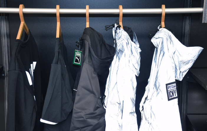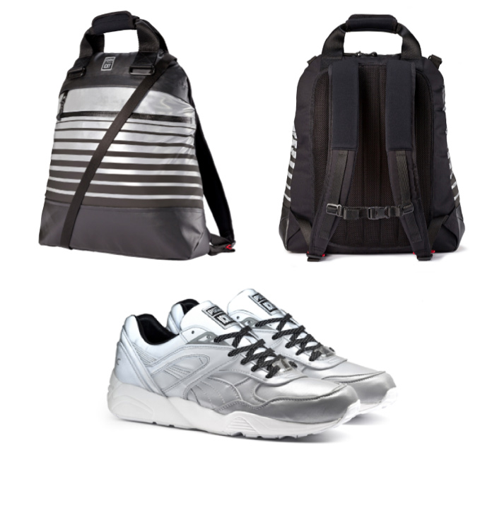 Lorsque la firme allemande s’associe avec Icny, une société basée à Brooklyn, ça donne une magnifique collaboration alliant design et aspect pratique sur toute une gamme de wear, sac et de sneaker. En effet, suite à un accrochage avec une voiture lors d’une balade nocturne en fixie, il y a cinq ans, le jeune créateur Icny Mike Cherman (ancien graphiste pour Nike) a développé Icny 3M. Des solutions rétro réfléchissantes pour le textile, permettant ainsi aux baroudeurs urbains d’être visible dans la nuit. La sneaker de la collection Puma X Icny est une Trinomic R698 disponible en France en trois coloris unis (noir, bordeaux, argenté) permettant de faire ressortir efficacement les bandes d’Icny 3M qui suivent toutes les coutures. Les différents vêtements allient confort et style avec des matériaux de qualités supérieurs pour un usage intense. Mention spéciale pour la veste Performance et à la paire de sneaker argentée qui, entièrement réfléchissante, lui procure un aspect futuriste.