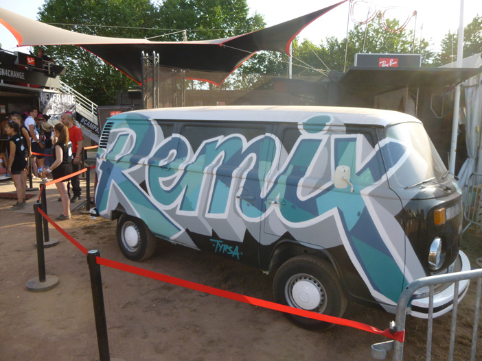Après une première journée de festival bien remplie avec ses hauts et ses bas, place à la journée du samedi qui affiche complet depuis plus d'un mois. Le réveil est difficile. Non pas que la soirée de la veille nous tape sur les neurones (quoique), mais les températures affolantes commencent dès 8 heures du matin. La tente s'est transformée en sauna et il faut se résigner à se lever. Les points d'eau et autres sanitaires sont déjà pris d’assaut. Tout le monde fait comme il peut pour se rafraîchir, tout ce qui peut servir de contenant stocke de l'eau (jerrican, piscine gonflable, bouteille d’eau, sac Leclerc et autres pistolets à eau…)