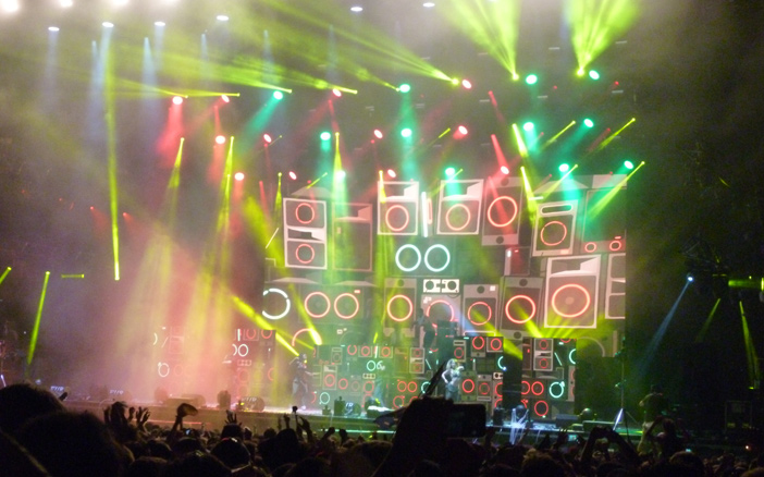 Ce samedi, c’était la soirée des gros mastodontes électro et c'est sur la grande scène, devant une assistance plus que garnie, que les anglais de The Chemical Brothers entament le techno set. Ils attaquent direct par leur titre phare « Hey Boy Hey Girl ». Ça jumpe de partout dans la fosse. Malgré leur carrière déjà bien remplie et des derniers albums beaucoup moins bons, les britanniques jouissent encore d'un bon cortège de fans. La musique est forte (trop!!!!), les beats toujours aussi ravageurs. Pendant une heure et demie, on va avoir droit au best of. Tous les hits du groupe y passent, accompagnés comme toujours d’effets vidéos toujours bien sentis, laissant hélas que peu de place à l'improvisation. On aura même le droit d'entendre deux titres de leur nouvel album. Une bonne prestation sans plus. Suffisante toutefois pour rendre nos corps épuisés et notre esprit relaxe. Et c’est reparti pour le chemin de croix…