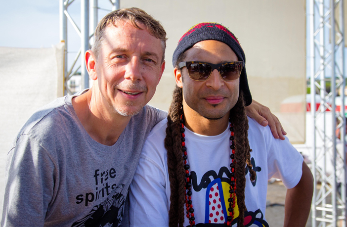Une dédicace spéciale pour le Dj producteur londonien Mala (en photo ci-dessous avec Gilles) et son set only vinyls, comme à son habitude, de bass-post-dubstep ponctué de respirations exceptionnelles… On pensait plutôt à un club de Londres ou d'Amsterdam au lieu d'une plage ensoleillée méditerranéenne. Ambiance au top, Dj au top, tout allait pour le mieux sur cette plage. Mais elle fût malheureusement le cadre de la mort, par noyade, d'un jeune anglais de 25 ans, le samedi après-midi. Le dernier après-midi prévu sur la plage a été logiquement annulé.