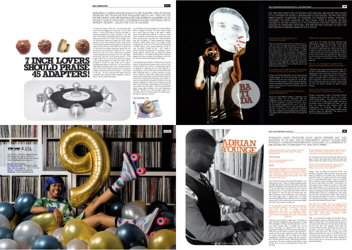 Diggin' in Nyc, Rare Wax Middle-Eastern Music special, 7inch lovers should praise 45 adapters, interviews: Adrian Younge, Rita Maia, Batida, Koichi Sakai, Daniel Maunick. Gear / Pi-Lambda Squared test, Top 10 by Roseau, Lifestyle pages, Sneakers / Solebox story, reviews, playlists.