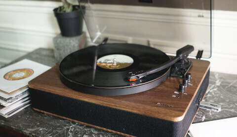 Tu as déjà quelques vinyles chez toi et tu rêves d’une platine vinyle, mais tu as aussi besoin d’un ampli et d’enceintes ? Evidemment ça bloque niveau budget. Plus d’inquiétude, Muse a lancé une solution pour les petites bourses, c’est-à-dire en dessous de 130 euros ttc. De plus, l’installation est bien pensée car tout est simplifié pour la vie d’un audiophile néophyte. La Muse MT-106BT est un combo lecteur de vinyle amplifié tout en un de quatre kilos seulement. Elle n’est pas la seule sur le marché, mais si nous vous en parlons c’est qu’elle possède bien des atouts. Tout d’abord elle est véritablement plug & play, il n’y a même pas besoin de fixer la courroie. En effet cette dernière est déjà installée, excepté brancher l’alimentation, encastrer le capot (ce qui n’est pas une obligation), il faut simplement l’allumer, ouvrir le loquet qui maintient le bras, mettre votre vinyle, et bien sûr, poser le bras de lecture sur votre disque ! Ah pardon, j’allais oublier, il faut tout de même retirer le cache en plastique qui protège la cellule. Bravo ! Il est difficile de faire plus simple, le fabricant vous laisse tout de même le plaisir de poser le bras sur votre tendre vinyle. C’est déjà un point fort et il y en a d’autres : un des avantages réside dans le fait qu’une seconde cellule est fournie, ce qui est un must pour un produit en entrée de gamme. Les trois boutons rotatifs sur la droite sont de bonne facture et à priori garantissent un bon usage sur la durée. Autre point fort, c’est l’option Bluetooth qui s’active simplement en tournant le bouton du milieu avec les multi fonctions. De plus le tourne-disque lit aussi bien en 33 que 45 tours et aussi en 78 tours. Sympa si tu as également des disques en gomme-laque, mais pour lire ce genre de disque ne faut-il pas utiliser une cellule spécifique ?